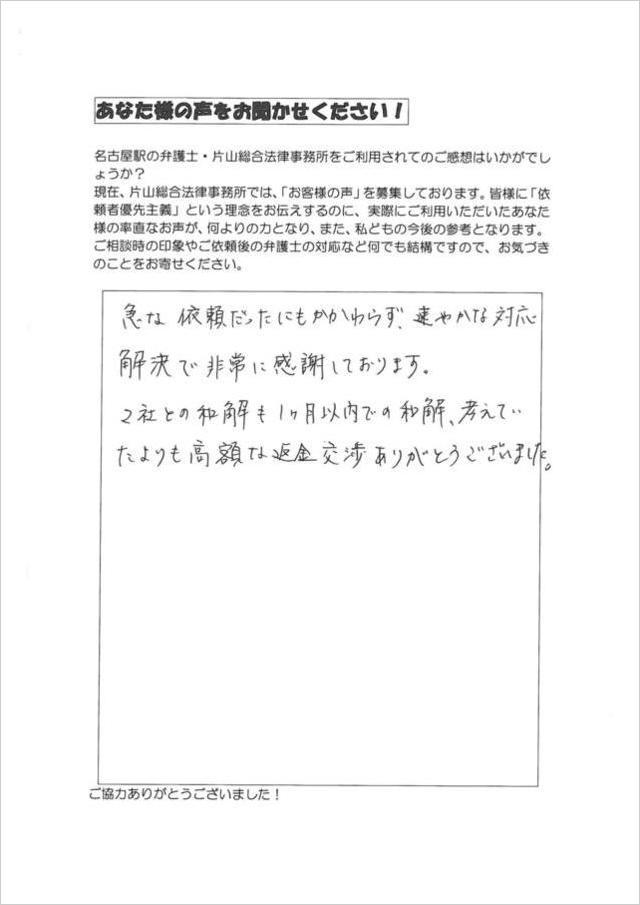 名古屋駅の弁護士・片山総合法律事務所では、事務所設立以来、過払い金請求のスピード解決に取り組んでいます。