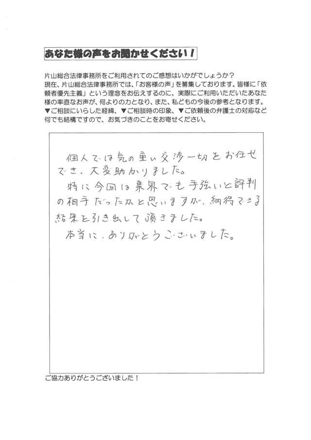 相談から裁判・交渉まで、所長弁護士が、全て担当します。依頼後の連絡も、所長弁護士が、直接差し上げますので、疑問点や不安な点をその都度解消することが出来ます。
