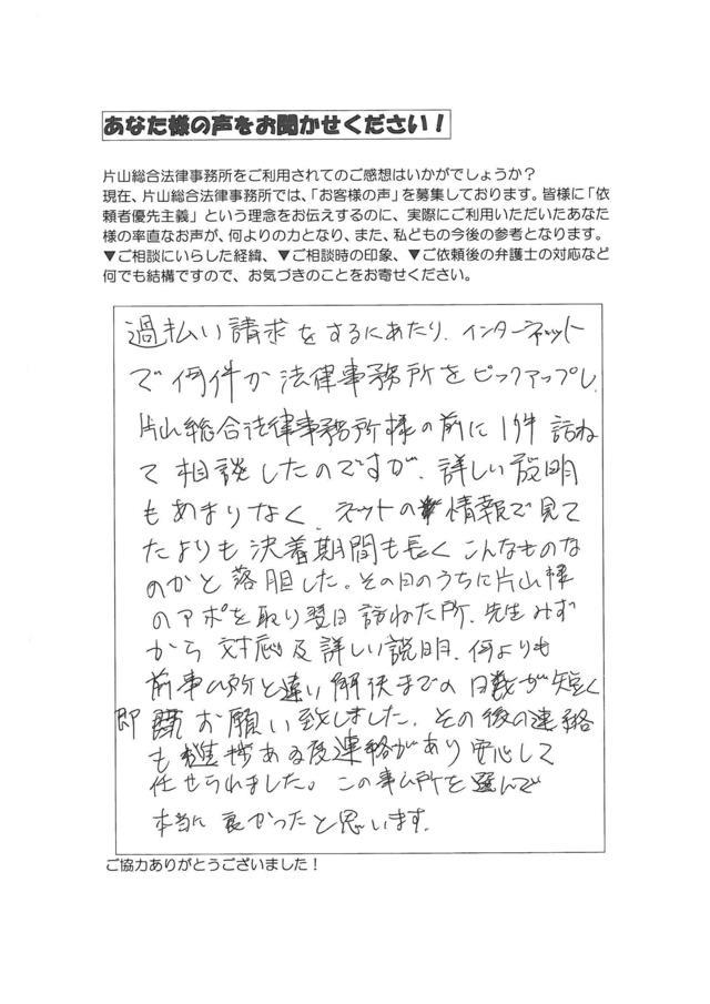 法律上許されない支払いすぎたお金だけを取り戻す手続きです。