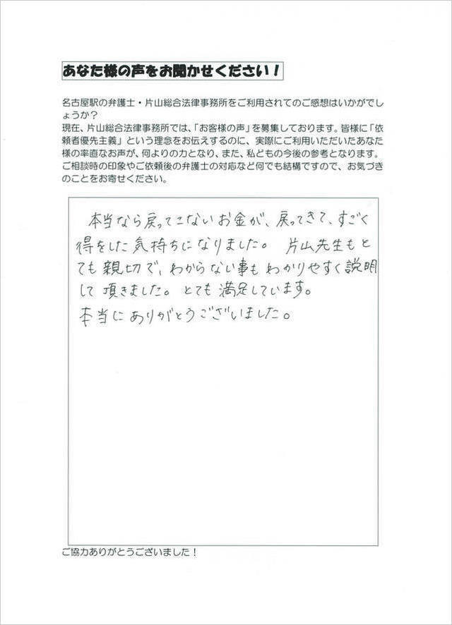名古屋駅の弁護士・片山総合法律事務所に過払い金請求をご依頼された方々の声・評判その2です。