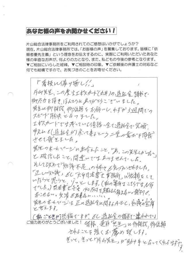 片山先生 過払い金の問題を、解決して頂き、誠にありがとうございました。