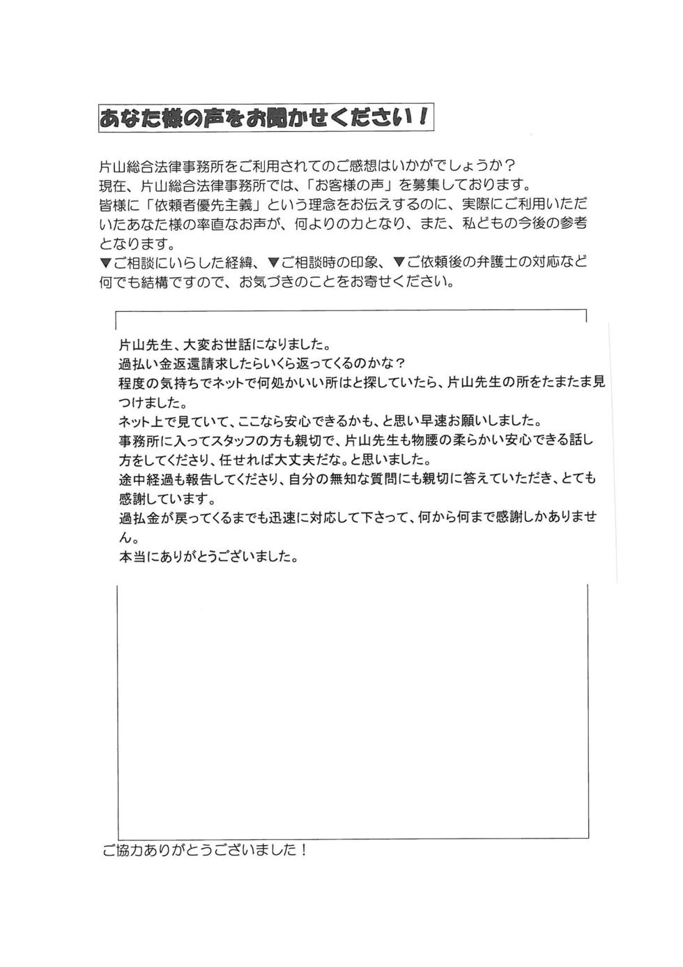 もし、知り合いに過払金の相談されたら、片山先生を紹介します。