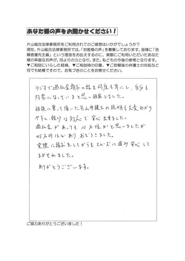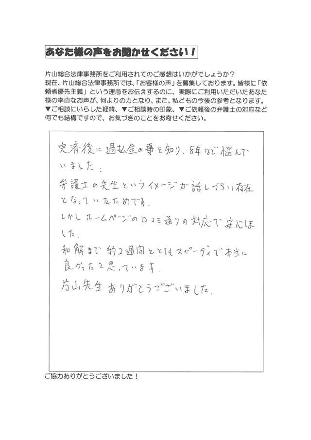 名古屋駅の弁護士・片山総合法律事務所に過払い金請求をご依頼頂いた方々のご感想・体験談をご紹介しております。