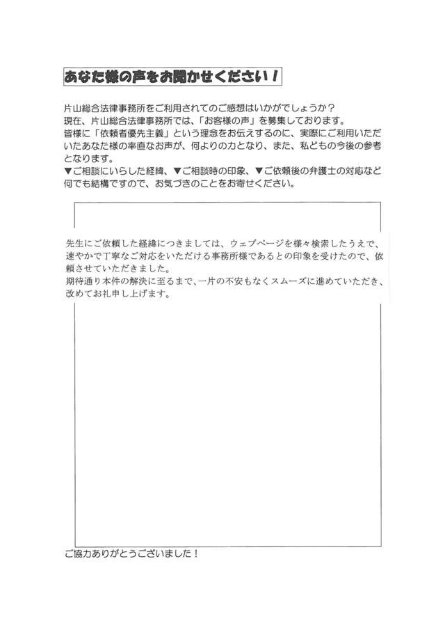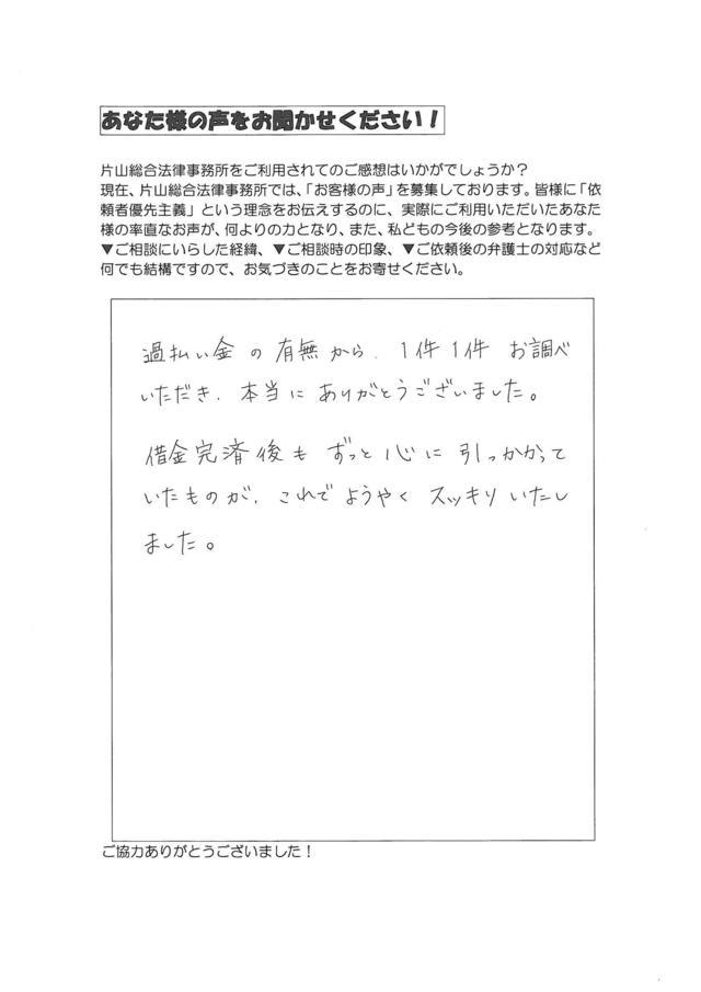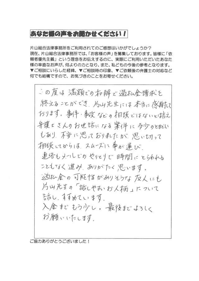 名古屋で過払い金請求に強い弁護士事務所を探して、いくつかホームページや口コミを見た中で、片山先生の事務所が一番良さそうだと思い、相談しました。