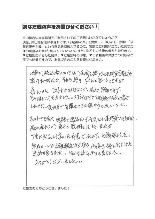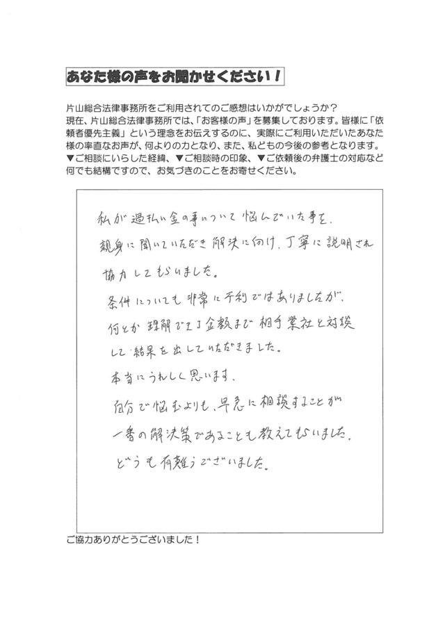今回、片山先生に過払い金請求のお願いをしまして、本当に良かったと思っております。